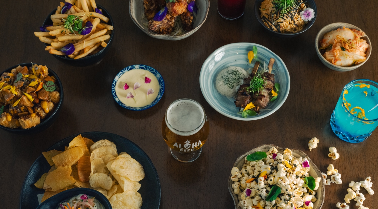美しい夕日を眺めながら、居酒屋風のおいしいおつまみとカクテルでハッピーアワーをお楽しみください。