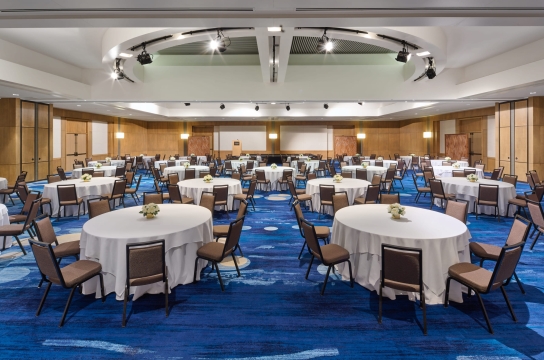 広々としたボールルームは、最大限のレセプションの柔軟性を持てるよう設計・装飾された遮るもののない空間です。上品な内装は、あらゆる重要な催しにふさわしい雰囲気を作り出します。多目的に使える可動壁により、2つの別々の部屋に分割する柔軟性があります。