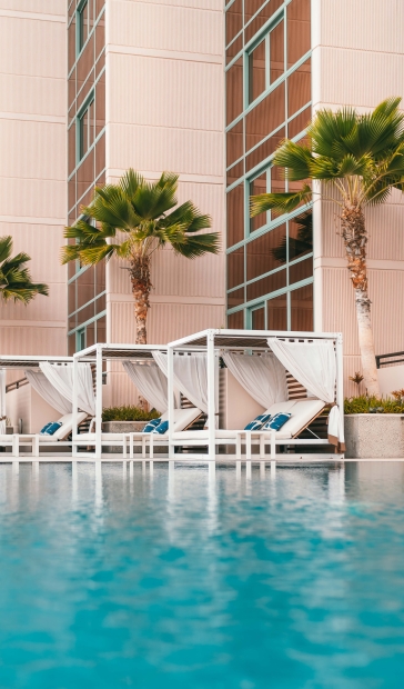 エレガントなインテリアと細部にまでこだわった洗練されたデザイン、そして床から天井までのパノラマウィンドウ。癒やしと再生をテーマにした客室でおくつろぎください。