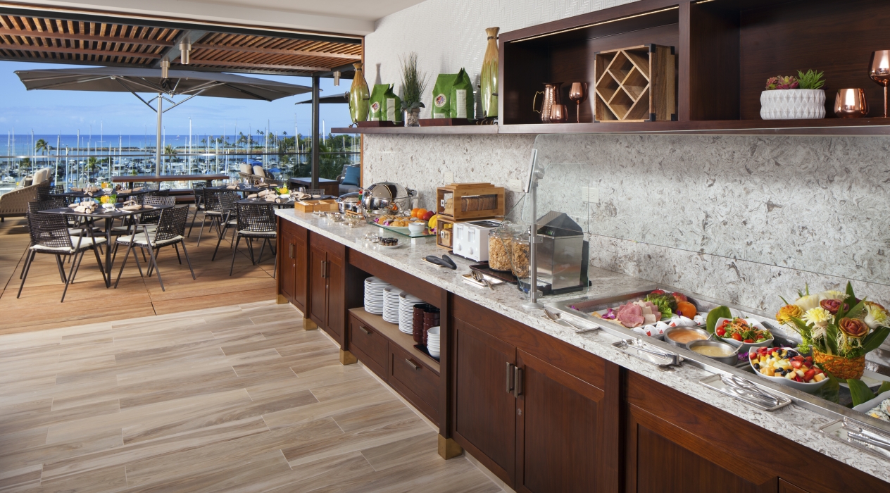 高層階のクラブフロアから眺める広大な太平洋。人気のクラブラウンジを使い放題!オーシャンフロントのラウンジではドラフトビールやワインが飲み放題だから、最高のハワイバケーションが実現します。SPGR会員様限定の特別割引プランをぜひご利用ください!